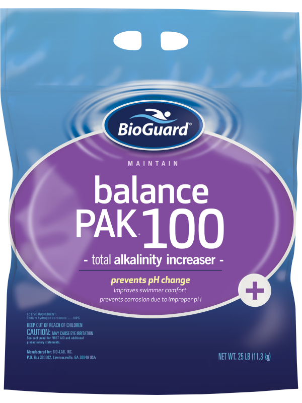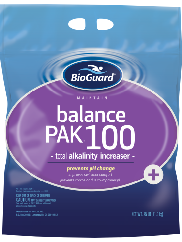Balance Pak® 100 is used to maintain total alkalinity in swimming pool water. Proper alkalinity prevents pH from changing due to rain, bather load, and other chemical application.