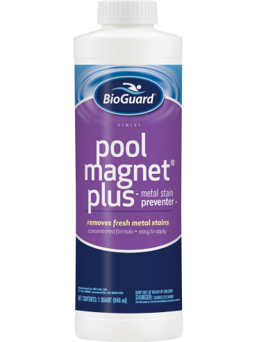 BioGuard® Pool Magnet® Plus is a concentrated chelating agent that ties up metals (iron, copper and manganese). This product removes fresh stains and prevents staining due to metals. Use this product monthly for swimming pools with metal containing fill water.