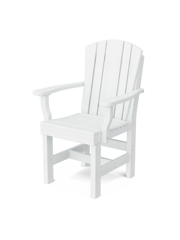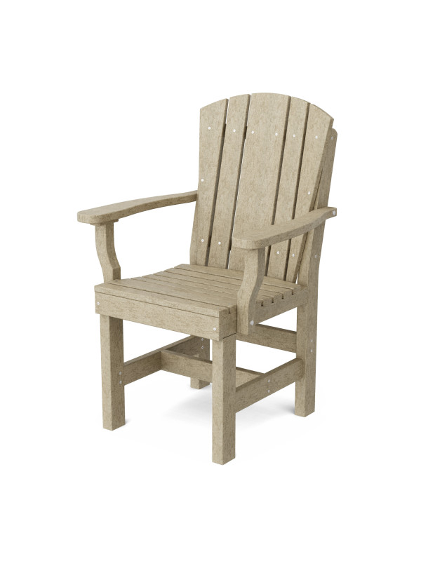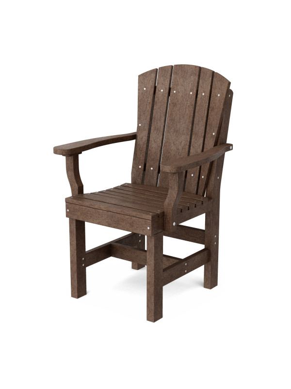 Designed with arms for added comfort, this dining chair is great for enjoying time with friends and family. This chair features a contoured seat and slightly reclined back, providing optimal comfort for long gatherings under the sky. Constructed from high-density polyethylene (HDPE), the material mimics natural wood without any of the maintenance—resistant to fading, weathering, and stains. Pair these chairs with any of our Heritage dining tables for the perfect outdoor dining experience.
