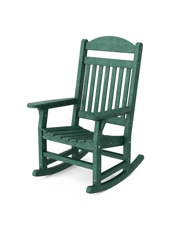 A traditional yet elegant slat design gives this rocking chair a timeless traditional look. Carefully designed, its smooth contours and perfect balance offer a soothing rocking experience to enjoy the outdoors. Built from heavy-duty poly lumber, this rocking chair is built to endure through all seasons, making it a perfect addition to any patio or porch. Ideal for long evenings under the stars or lazy afternoon naps, this chair is a versatile addition to any outdoor space.