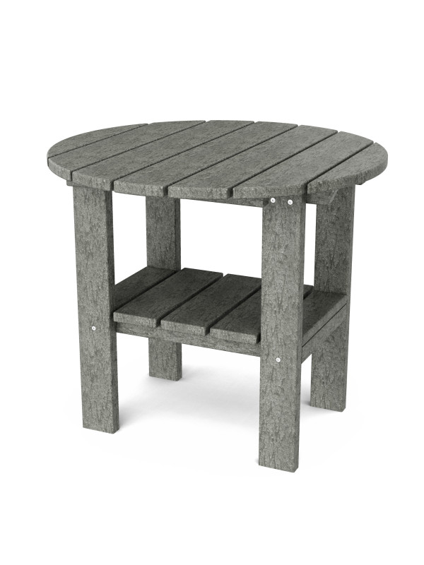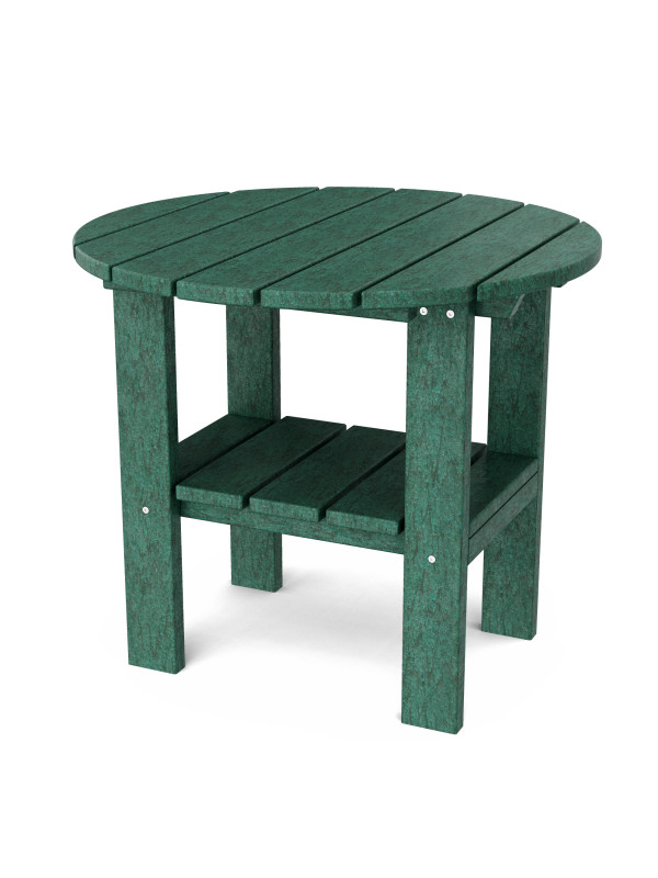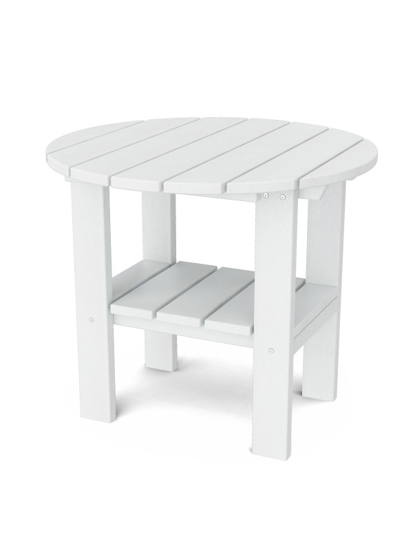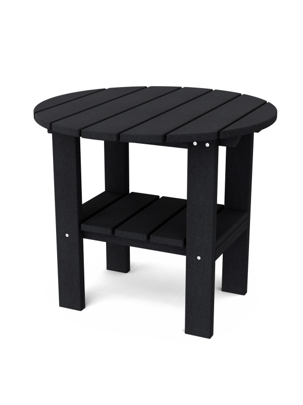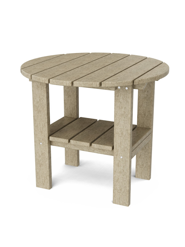 Soak up the sunshine with the Classic Round Side Table by your side holding your favorite drink. This side table features a 24 in. round top, spacious enough to hold your refreshing beverages, novels, and sunglasses. Constructed from durable poly lumber, it withstands the elements while maintaining a natural wood appearance without the need for regular maintenance. Built-in UV-stabilizers ensure colors stay vibrant year after year. Everything you need will be right by your side with this round side table.