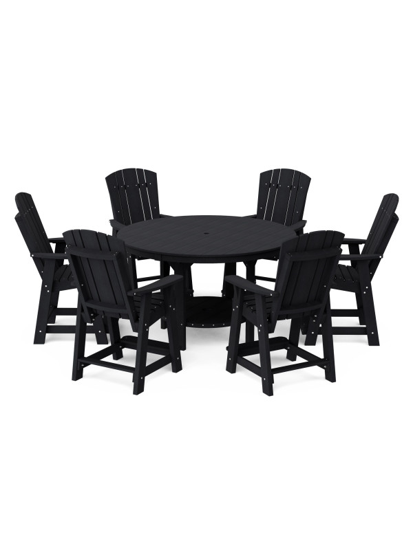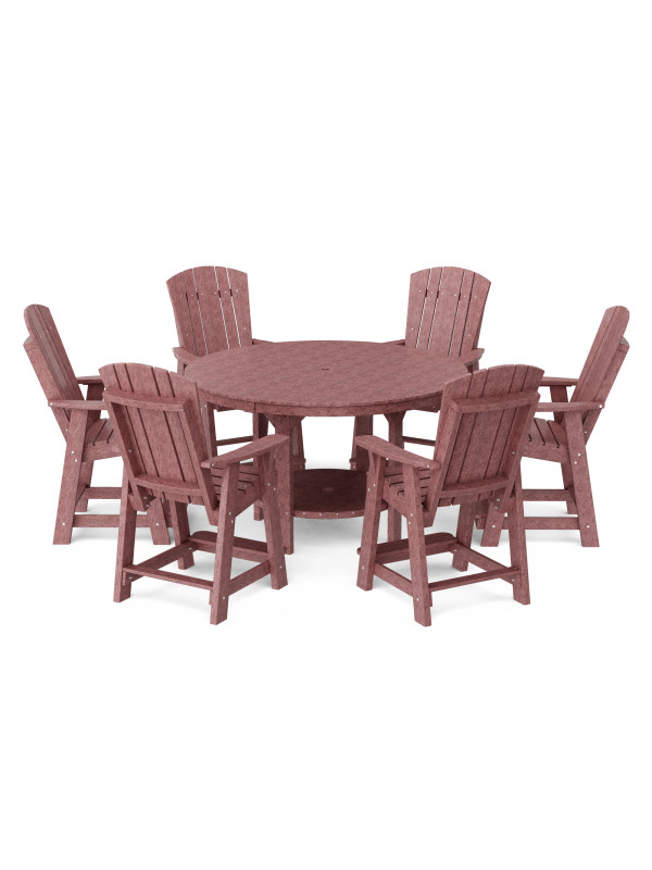 Share a toast or two with the Heritage 60” 7-Piece Pub Table Set, crafted for moments that matter. This set includes (1) LCC-178 Heritage 60” Pub Table and (6) LCC-150 Heritage Balcony Chairs. The pub table provides plenty of space for drinks and appetizers while the balcony chairs offer ultimate comfort and style. Constructed from heavy-duty poly lumber, it is resistant to fading, cracking, splitting, and harsh weather conditions. Host a casual brunch or a quiet sunset dinner with this durable set.