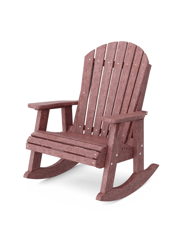 Enjoy an afternoon of relaxation in the Heritage High Fan Back Rocking Chair. Built with supreme comfort in mind, these rocking chairs are a great way to melt the stress from your day. Constructed from durable poly lumber and 316 marine grade hardware, this chair is resistant to the elements, from scorching sun rays to salty sea breezes. Whether it's nestled on a cozy porch, overlooking a tranquil garden, or positioned on a beachfront patio, it provides the ultimate relaxation spot.