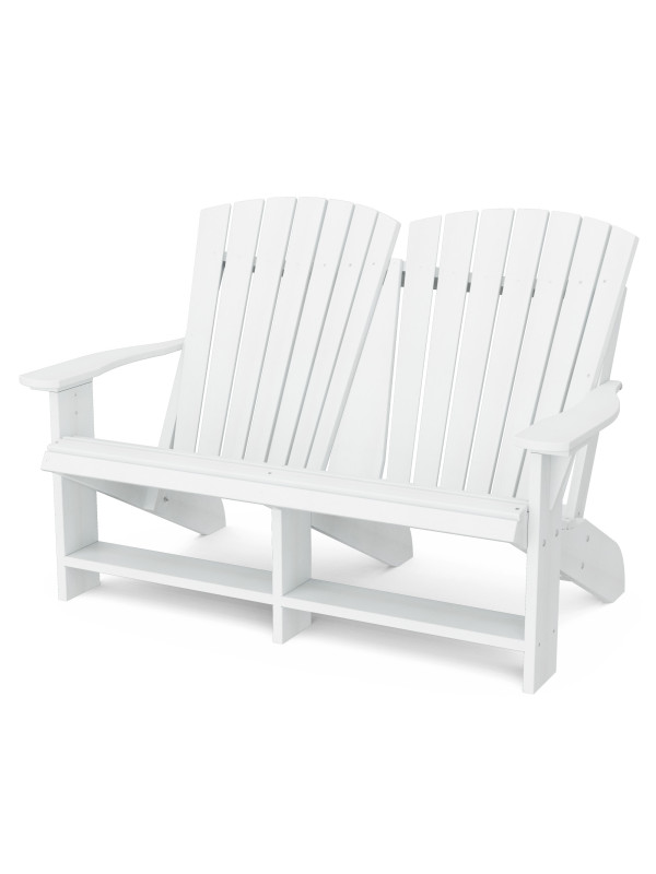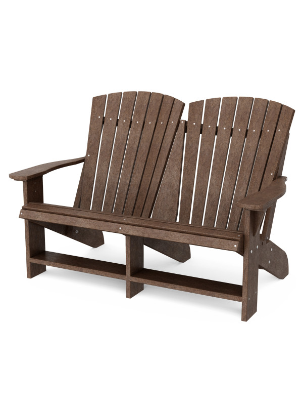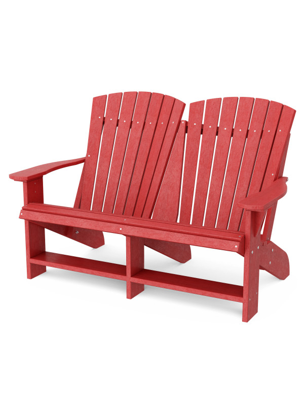 Create the perfect spot for two with this inviting Heritage Double Adirondack. With its expertly contoured design and gently sloping backrest, it’s the perfect setting for afternoon chats and shared laughter as the sun sets. Built from durable high-density polyethylene (HDPE), it can withstand a variety of environmental stressors. Its vibrant colors are resistant to fading, ensuring it remains as radiant as your memories over the years. Whether placed by the lakeside or in your backyard, this double Adirondack is a testament to timeless design and enduring quality.
