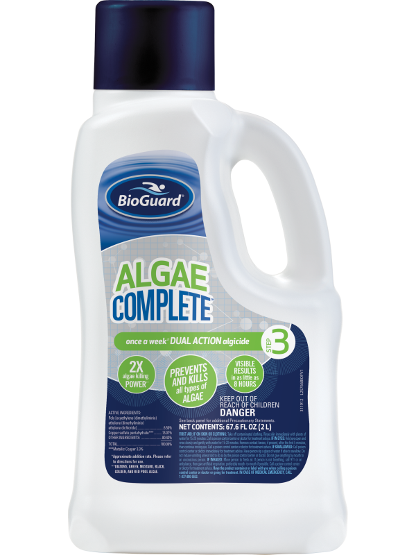 Algae Complete® is a highly effective, fast-acting swimming pool algae destroyer. It kills and prevents all types of pool algae. It is formulated to complement most swimming pool sanitizers. Algae Complete® is non-foaming and can be used in pools with attached spas or jetted returns.