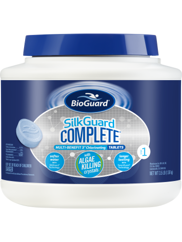 SilkGuard® protects your pool equipment for longer life. It coats metal surfaces protecting them from corrosion and rust. It prevents scale formation in your pool circulation system and on pool surfaces. SilkGuard® makes the water soft and smooth.