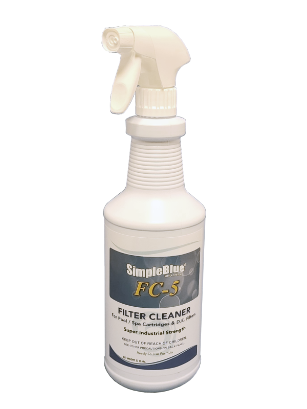 Directions: Remove cartridge or D.E. element from filter housing. Hose off any loose debris on the element. Thoroughly wet filter element with water. Spray FC-5 liberally over surface area of filter element. Let set for 3 - 7 minutes. Thoroughly rinse the element with water(improper rinsing may cause foaming in pool or spa). Heavily soiled filter elements may need a second application.